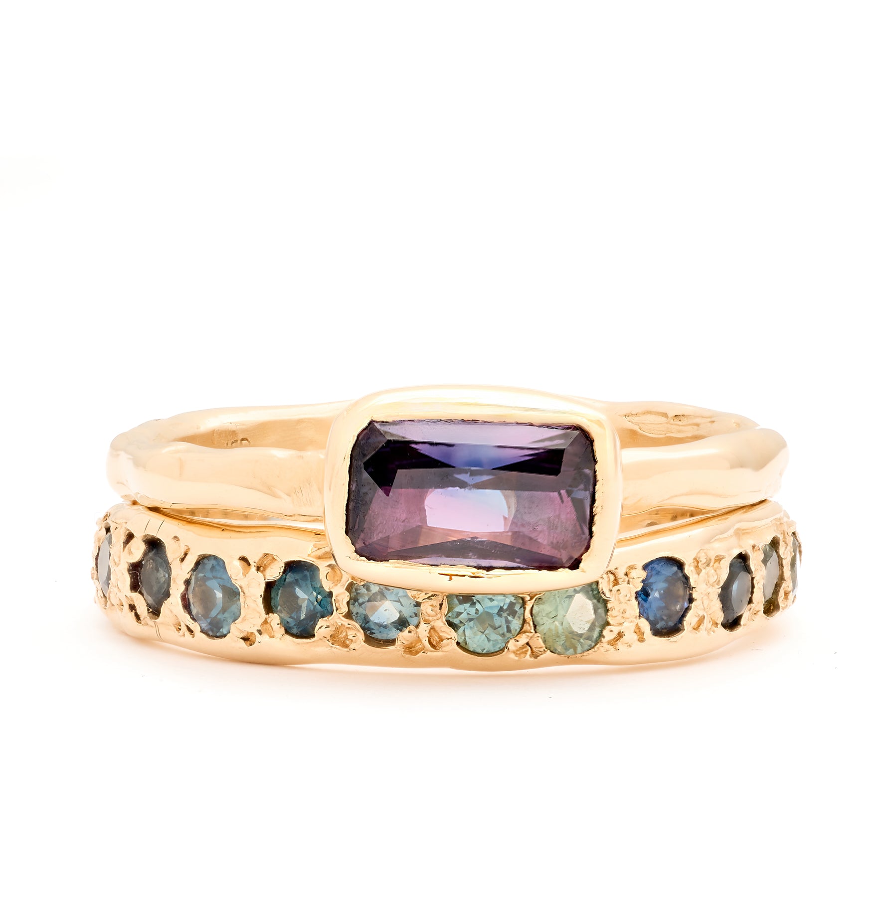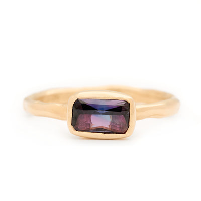 Purple sapphire with flashes of blue from Australia set in a one-of-a-kind ring mount hand-carved by Johanna.